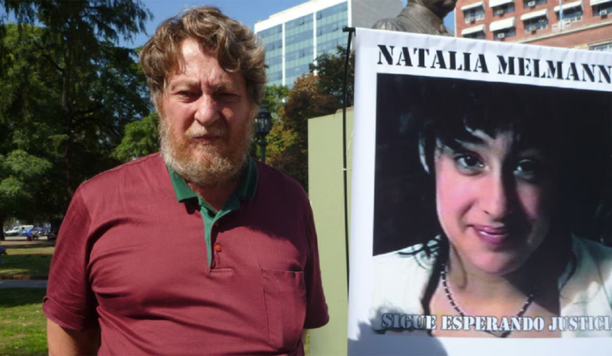 Gustavo Melman, el papá de Natalia, durante una marcha en reclamo de justicia.
